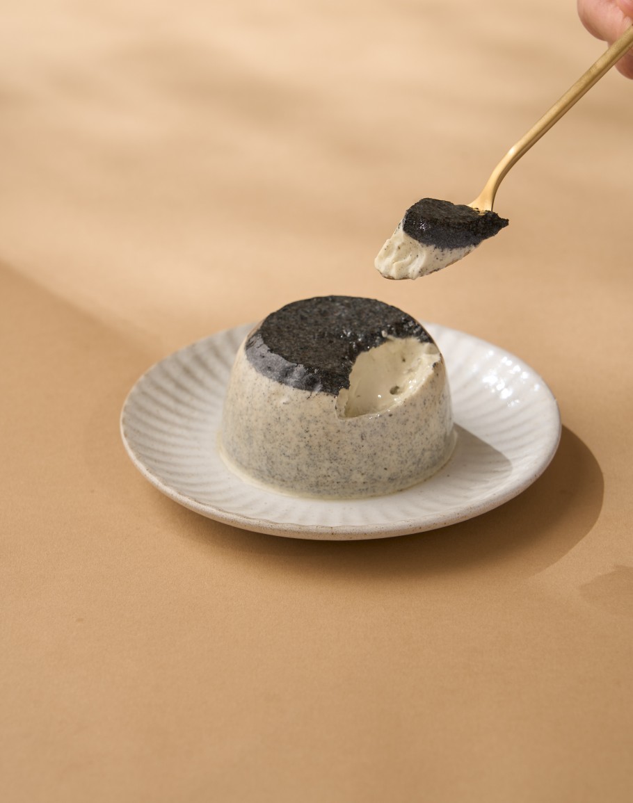 布丁成份:雞蛋、牛奶、鮮奶油、砂糖、芝麻粉、香料