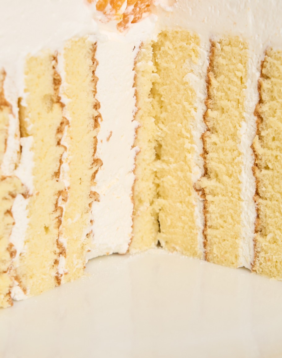 綿密香草蛋糕搭配滑順鮮奶油,外層裹上清爽的日本鮮奶油,表面點綴進口水蜜桃,香甜多汁、口感輕盈。每一口都是柔柔的幸福感。